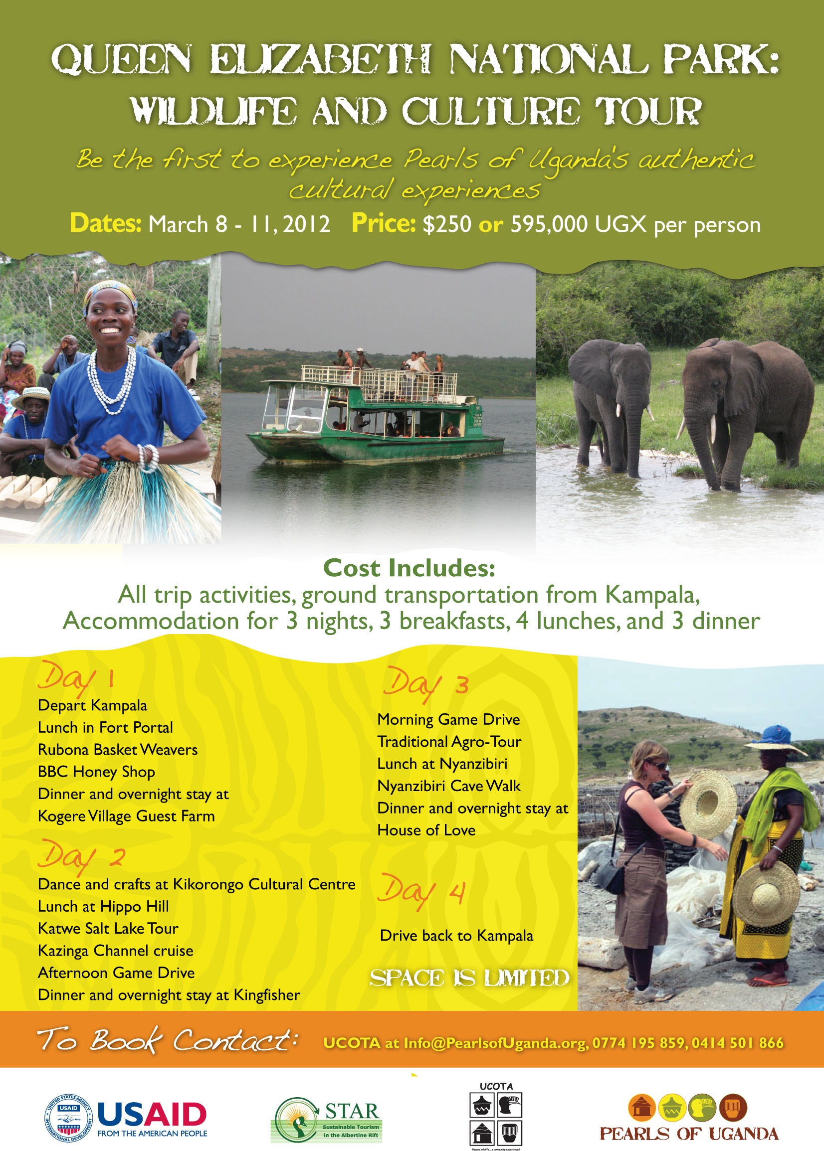 UCOTA has run two separate test tours for many of its new member products around Queen Elizabeth National Park to approve them as new members of UCOTA and for integration into Pearls of Uganda. The test tours are meant to prepare community tourism enterprises to practice handling guests and the operational processes of running a small tourism enterprise.
